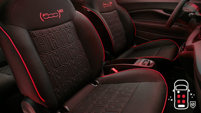 The fabric of the seats of both (500e)RED and new (600e)RED were treated with a biocide substance with highly effective action (up to 95% at the time of the treatment*) against viruses and bacteria, with prolonged protection over time (**).